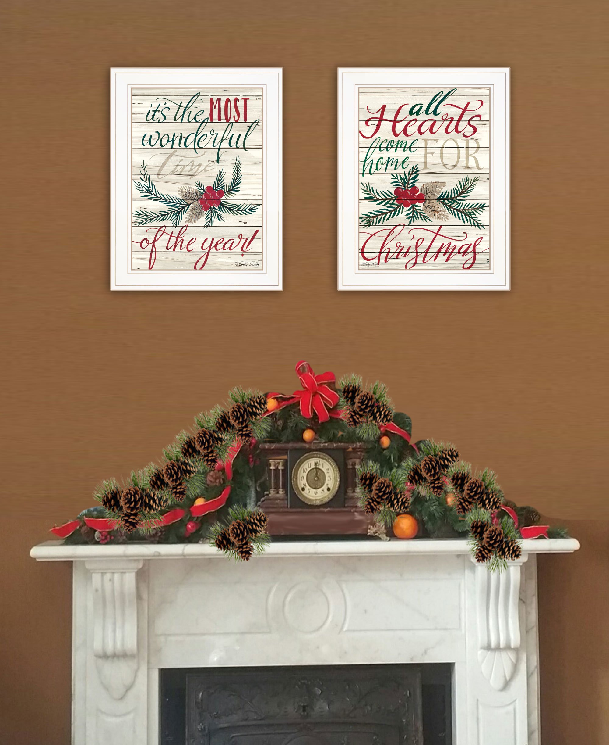"All Hearts Come Home for Christmas" 2-Piece Vignette by Artisan Cindy Jacobs, Ready to Hang Framed Print, White Frame